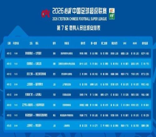 剛剛,中國(guó)足協(xié)在官方社交賬號(hào)上公布2026賽季中超聯(lián)賽第7輪裁判人員選派安排表。本輪的焦點(diǎn)戰(zhàn)遼寧鐵人主場(chǎng)與大連英博的遼寧德比,足協(xié)并沒(méi)有安排國(guó)際級(jí)裁判執(zhí)哨,而是選擇了此前因錯(cuò)漏判缺席多輪的裁判。