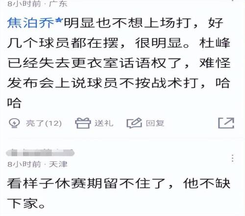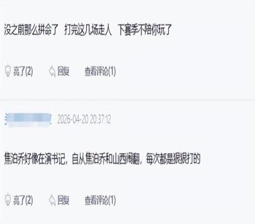 就昨晚焦泊喬這樣出工不出力的表現(xiàn),絕對是該罵的,別管是不是剛剛復(fù)出狀態(tài)不佳,別管以前在杜鋒手底下遭受了多少委屈,也別管休賽期是否真的要離隊,作為一個職業(yè)球員,既然選擇了回歸比賽,上了場就該拿出該有的競技狀態(tài),把比賽打好,用行動去打臉杜鋒,而不是用擺爛去報復(fù)杜鋒。