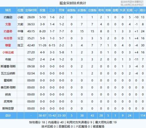 穆雷30分7板7助、約基奇24分15板8助、布勞恩16分3板5助2斷、小哈達(dá)威16分3板、約翰遜13分1板2助、戈登8分7板4助