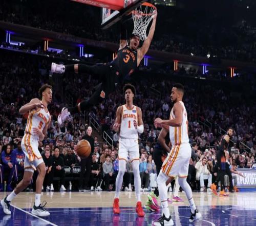 而從美媒《BR》給出的預(yù)測(cè)來看,尼克斯晉級(jí)分區(qū)半決賽的概率高達(dá)82.6%,顯然這一輪系列賽對(duì)尼克斯難度不大,他們最重要的任務(wù),就是瞄著凱爾特人,而且放眼全聯(lián)盟東西部前四,也只有尼克斯的鋒線配置,能對(duì)得上雙探花,并且采用車輪戰(zhàn)消耗。所以首輪系列賽,尼克斯需要盡快解決戰(zhàn)斗,避免體能消耗?;仡櫼幌卤荣悾_場(chǎng)唐斯接球上籃,哈特突破起飛暴扣,丹尼爾斯和邁克勒姆輪流單打,布里奇斯續(xù)上三分,哈特彈無虛發(fā)。中段布倫森追身三分球打停老鷹,約翰遜失誤太多了,怕夾擊。