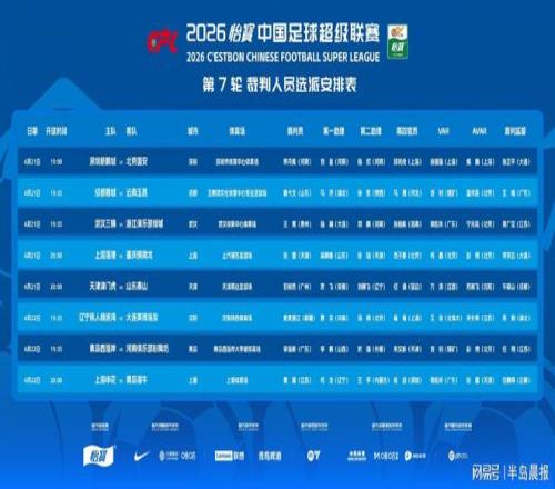 中超官方21日公布了第七輪裁判名單,遼寧鐵人與大連英博一戰(zhàn)將由曾獲中超銀哨獎(jiǎng)的麥麥提江主哨。艾堃任視頻助理裁判。