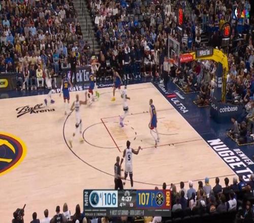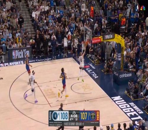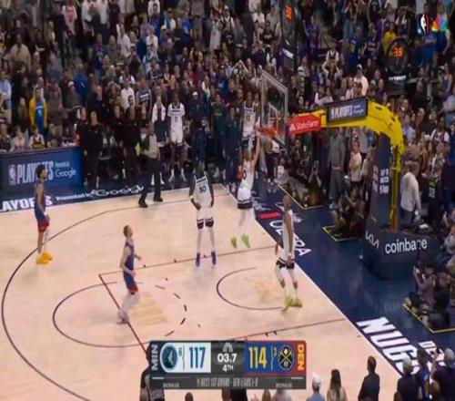 ——剩下4分06秒前,搶下了約基奇的籃板,快攻上籃,森林狼領(lǐng)先3分