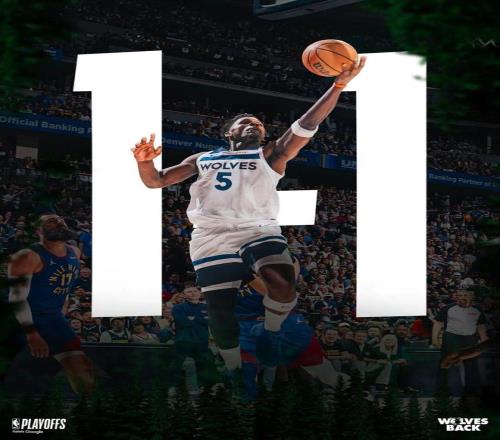 首輪G2,森林狼客場(chǎng)119-114戰(zhàn)勝掘金,大比分追至1-1平。