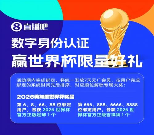 網(wǎng)絡(luò)身份認證第二季!綁定即抽2026世界杯正版周邊