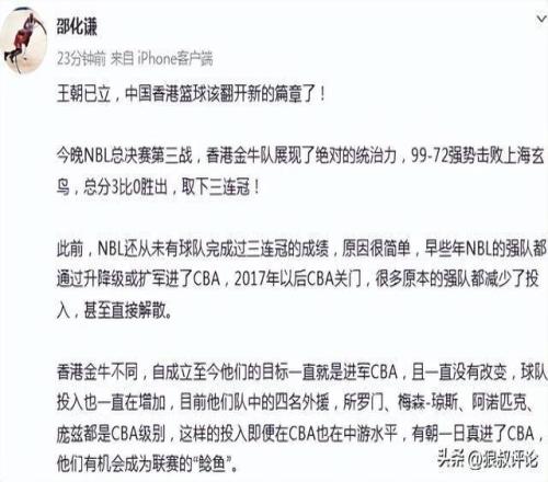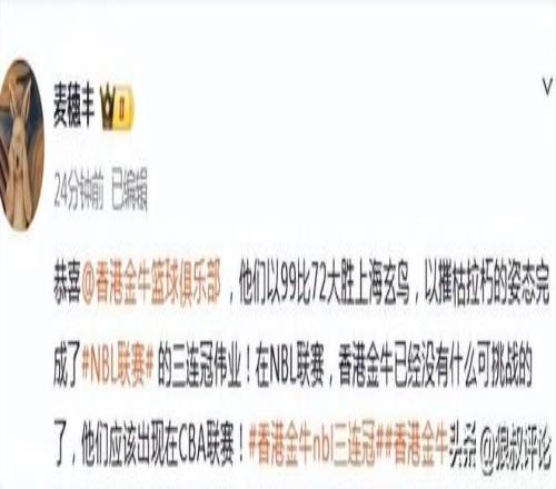 香港金牛創(chuàng)NBL三連冠引熱議!媒體人:自成立至今的目標(biāo)一直是CBA