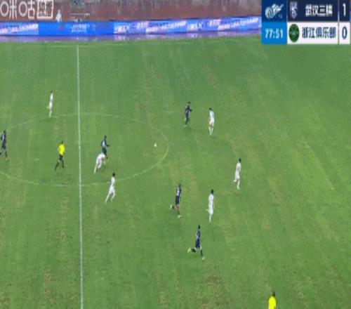易邊再戰(zhàn),第49分鐘,浙江隊(duì)錯(cuò)失扳平良機(jī)。托利奇精準(zhǔn)挑傳,陶強(qiáng)龍單刀機(jī)會(huì)挑射打偏。