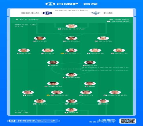 體育播報(bào)4月22日宣 意杯半決賽次回合,國米對(duì)陣科莫,賽前首發(fā)公布。