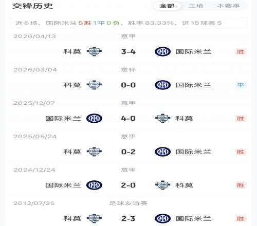 首回合,國米客場(chǎng)0-0戰(zhàn)平科莫。本場(chǎng)勝者將在決賽對(duì)陣?yán)R奧與亞特蘭大的勝者。