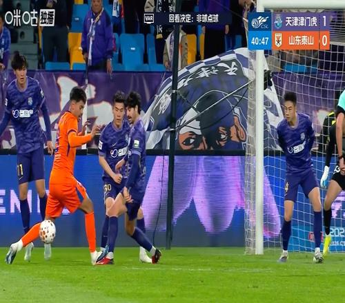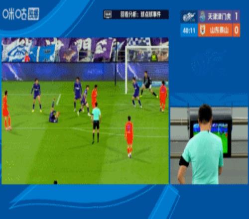 主裁判親自去場邊看,最終認(rèn)定不是點(diǎn)球,并判給津門虎任意球。