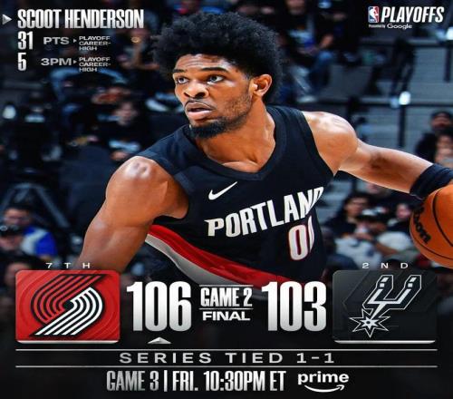 亨德森31分文班腦震蕩傷退 馬刺1-1開拓者
