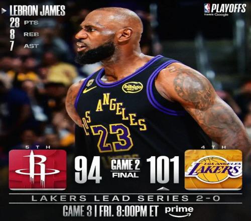 詹姆斯28分杜蘭特復(fù)出9失誤 湖人2-0火箭