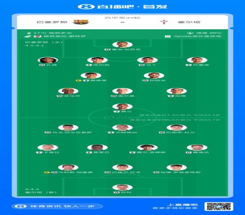 體育播報4月23日宣 北京時間4月22日3:30,西甲第33輪,巴薩vs塞爾塔。賽前雙方公布了本場比賽的首發(fā)名單。