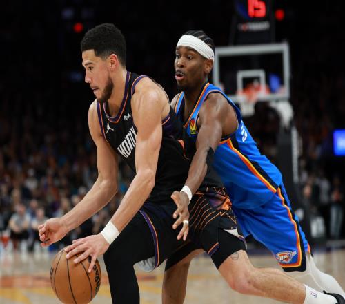 在雙方的第一場交手中太陽84-119慘敗給雷霆,這場比賽太陽沒有展現(xiàn)出太多的抵抗力。全隊只有布克、杰倫·格林和狄龍得分上雙,但是他們?nèi)说男室膊⒉桓?。布克拿?3分,杰倫·格林拿到17分,狄龍拿到18分。太陽全隊的三分39投13中也是表現(xiàn)慘淡,全隊17次失誤比雷霆多了11次,而且在防守端也沒有給雷霆造成足夠的壓力。