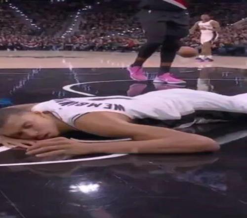文班趴在地上緩了好久,自己踉蹌著走回更衣室。他退場時的數(shù)據(jù)定格在5分4籃板1助攻1蓋帽——打了不到12分鐘。