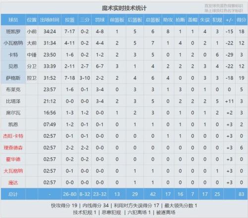 魔術(shù)投籃命中率32.5%,三分命中率25%,這種進攻怎么贏球?小卡特投籃6中1,貝恩投籃11中2。薩格斯19分6板4助、班凱羅18分6板8助、小瓦格納12分7板。活塞這邊,坎寧安27分6板11助、哈里斯16分11板、杜倫11分9板4助。