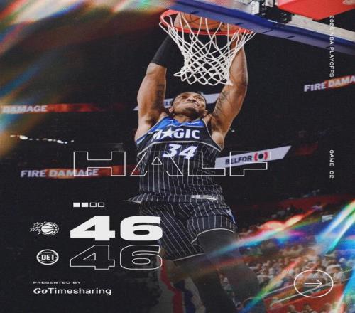 第一節(jié)打完,活塞25-21領(lǐng)先魔術(shù)4分。第二節(jié)薩格斯命中2記三分,幫助魔術(shù)完成反超。兩隊進攻效率都不高,活塞半場三分14中3,魔術(shù)則是16中4。活塞上半場15次犯規(guī),送給魔術(shù)21次罰球。上半場打完,兩隊46-46戰(zhàn)平了。
