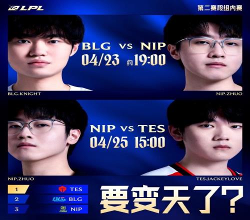 4月25日 15:00 NIP對戰(zhàn)TES(BO3)