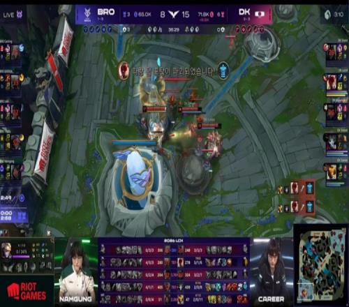 后期龍魂團(tuán),Siwoo韋魯斯繞后,許哥安妮W拍臉Teddy后再殺Namgung妮蔻,DK打出0換3吃掉大小兩龍,經(jīng)濟(jì)領(lǐng)先3k。中路團(tuán)戰(zhàn),許哥安妮繞后帶隊(duì)擊殺BRO上野二人,Lucid再吃小龍,雙方均聽牌水龍魂,DK經(jīng)濟(jì)領(lǐng)先5k。