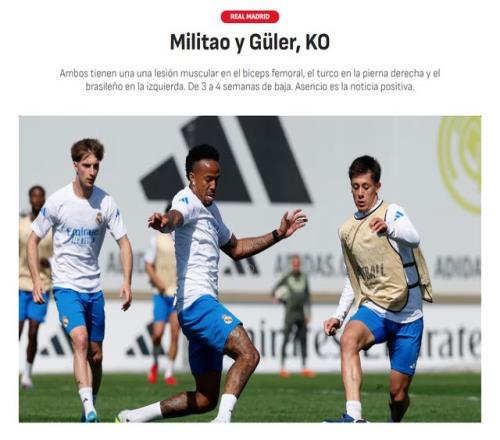 《阿斯報》指出,米利唐、居萊爾都需要休戰(zhàn)3-4周時間。這意味著,兩人的2025-26賽季已經(jīng)結(jié)束。