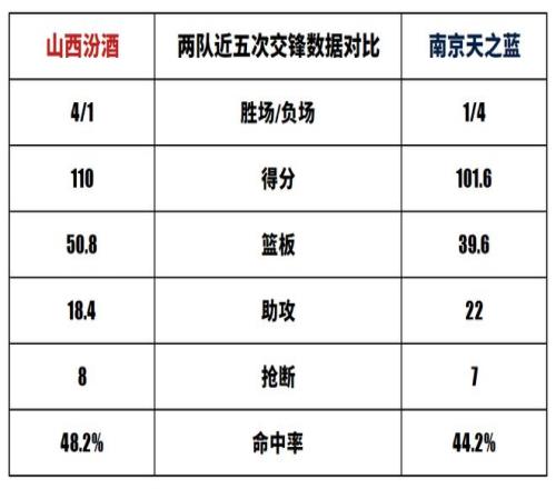 山西汾酒與南京天之藍(lán)歷史上一共交手29次,山西汾酒20勝9負(fù)。本賽季兩隊交手1次,山西汾酒1勝0負(fù)。