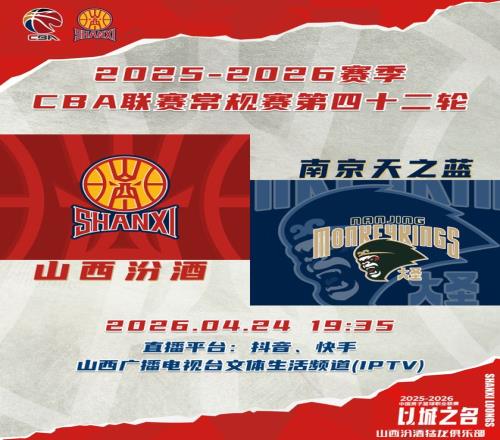 北京時間2026年4月24日19:35,2025-2026賽季CBA聯(lián)賽常規(guī)賽第42輪繼續(xù)進(jìn)行,山西汾酒主場對陣南京天之藍(lán),迎來常規(guī)賽收官之戰(zhàn),球迷觀眾可以通過抖音、快手、山西廣播電視臺文體生活頻道(IPTV)觀看比賽實況,讓我們與球隊一起戰(zhàn)斗到底!