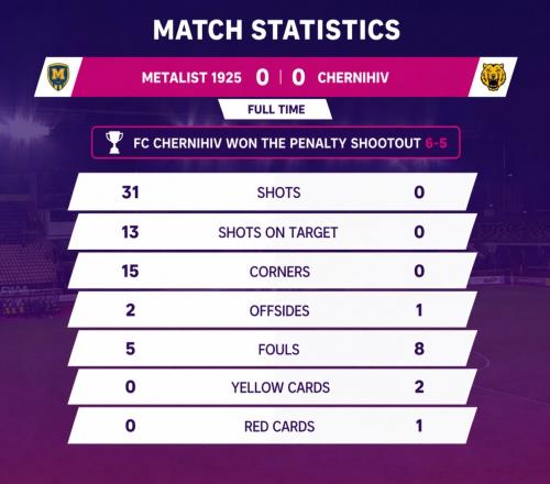 然而,切爾尼夫隊的門將馬克西姆·塔塔連科表現(xiàn)出色,力保球門不失。最終,比賽進入點球大戰(zhàn),切爾尼戈夫隊以5比6的比分爆冷獲勝。
