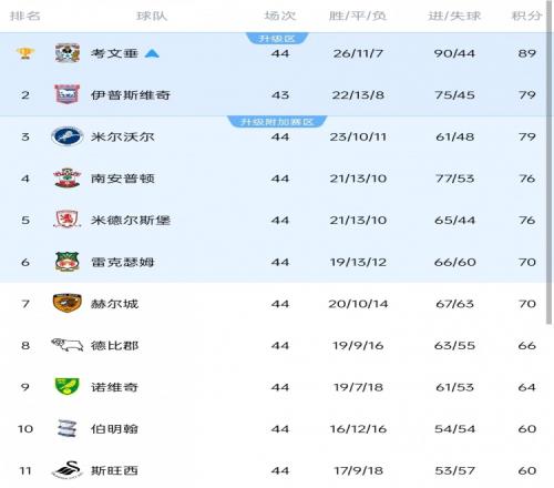 體育播報4月23日宣 英冠第44輪比賽戰(zhàn)罷,升級附加賽資格的爭奪也進(jìn)入白熱化階段。