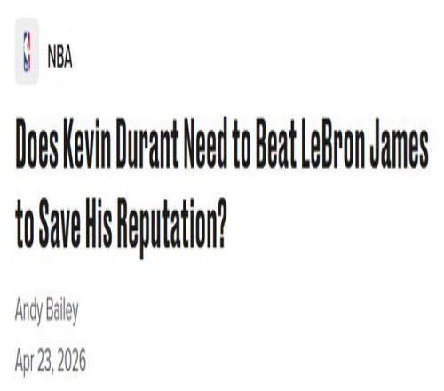 倘若杜蘭特幾周后就此退役,手握兩座勇士總冠軍,他的生涯評(píng)價(jià)會(huì)牢牢鎖定兩個(gè)標(biāo)簽:歷史頂級(jí)得分手;脫離庫(kù)里,無(wú)法在最高舞臺(tái)贏球。
