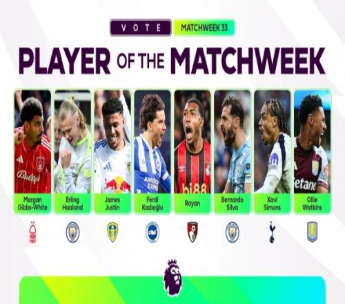 體育播報(bào)4月23日宣 今天,英超聯(lián)賽在官網(wǎng)公布了2025/26賽季英超第33輪最佳球員候選,哈蘭德、B席、沃特金斯等8位球員在列。