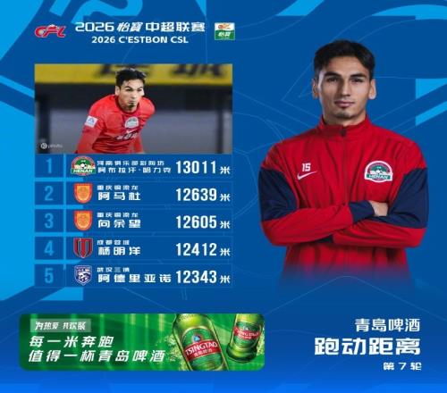 在對青島西海岸的比賽中,河南足球俱樂部阿布拉汗·哈力克跑動距離達到了13011米,成功排名本輪跑動距離榜首位。