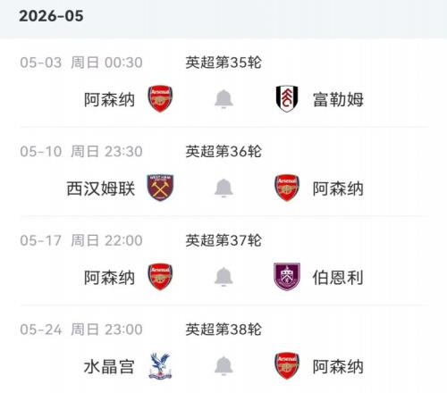 阿森納剩余賽程↓