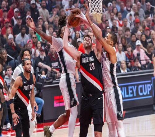 次節(jié)較量,場上風云突變。圣安東尼奧陷入得分困境,只有零星單打命中?;衾盏稀⒎虻蟻喡赎犨B續(xù)掀起得分狂潮,開拓者越戰(zhàn)越勇,一度將分差擴大至19分。尚帕尼命中遠投為馬刺打破僵局,半場打完,馬刺以41比58落后,波特蘭單節(jié)以33比18領先。