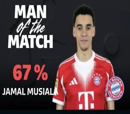 德甲第29輪,拜仁慕尼黑客場5-0大勝圣保利,此役傳射建功的穆西亞拉當(dāng)選德甲官方全場最佳球員。此役客場對陣圣保利,首發(fā)出戰(zhàn)的穆西亞拉在開場第9分鐘破門為拜仁首開記錄,下半場第