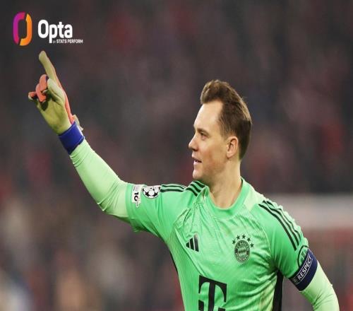 諾伊爾第24次出戰(zhàn)歐冠14決賽,僅次于穆勒位列歷史第二