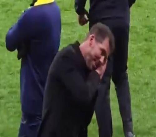 率隊淘汰巴薩,西蒙尼賽后在場邊做出“晚安”動作