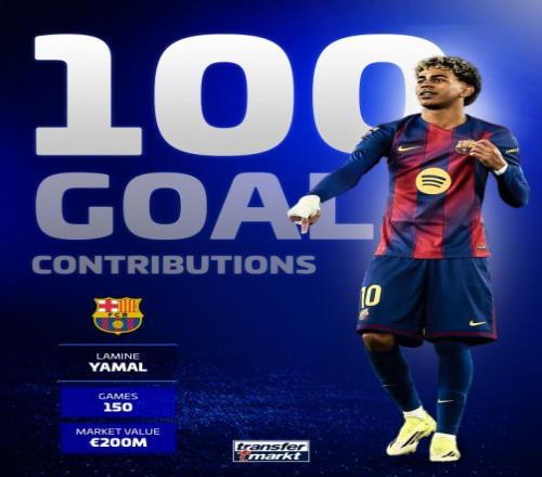 亞馬爾150場造100球,打破巴薩最年輕出場紀錄