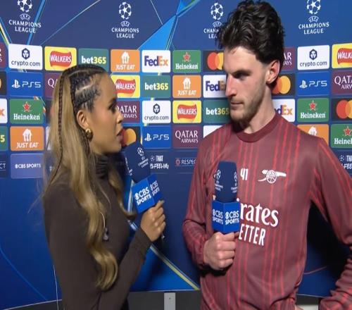 阿森納主場0-0戰(zhàn)平葡萄牙體育,兩回合總比分1-0晉級歐冠半決賽,賴斯賽后接受了CBS體育的采訪。賴斯,恭喜你。連續(xù)兩個賽季打進歐冠半決賽,這是俱樂部歷史上的第一次。不過終場哨